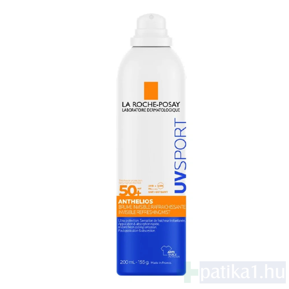 LA ROCHE-POSAY ANTHELIOS UV SPORT frissítő fényvédő permet SPF50+. Nagyon magas UVB/UVA elleni védelem. Frissítő és láthatatlan textúra. Víz-, izzadság-és homokálló. Nagyon gyorsan beszívódik.* Láthatatlan a bőrön.* Alkalmazás után hűsítő érzetet biztosít.* Nem hagy foltot a textíliákon.