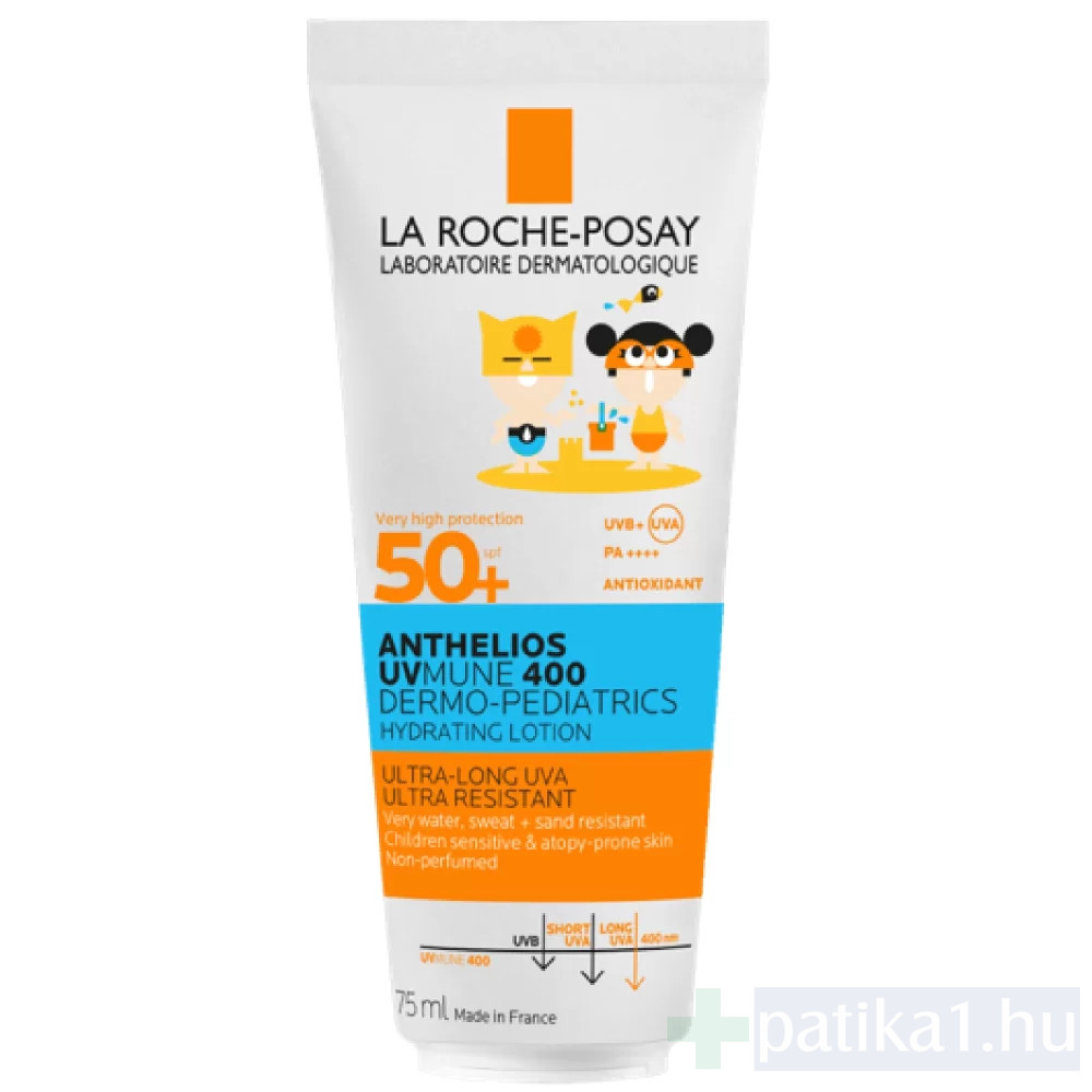 LA ROCHE POSAY Anthelios UVMune400 Dermo-Pediatrics Hidratáló napvédő tej SPF 50+ gyereknek. 75%-KAL KEVESEBB MŰANYAG FELHASZNÁLÁSÁVAL KÉSZÜLT A 250 ML-ES TUBUSAINKHOZ KÉPEST. A TUBUS RÉSZBEN KARTONPAPÍRBÓL KÉSZÜLT. DERMO-PEDIATRICS HIDRATÁLÓ NAPVÉDŐ TEJ SPF 50+ GYEREKEKNEK. Arcra és testre. Nagyon magas UVB/UVA-védelem + extra hosszú hullámú UVA-sugárzás elleni védelem. Segít megóvni a bőr természetes védekezőrendszerét. Nem hagy fehér nyomot. Illatanyagmentes.