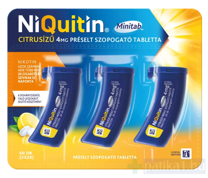 Mielőtt elkezdi alkalmazni ezt a gyógyszert, olvassa el figyelmesen az alábbi betegtájékoztatót, mert az Ön számára fontos információkat tartalmaz. Ezt a gyógyszert mindig pontosan a betegtájékoztatóban leírtaknak, vagy az Ön gondozását végző egészségügyi szakember által elmondottaknak megfelelően alkalmazza. - Tartsa meg a betegtájékoztatót, mert a benne szereplő információkra a későbbiekben is szüksége lehet. - További információkért vagy tanácsért forduljon kezelőorvosához, a gondozását végző egészségügyi szakemberhez, dohányzásról való leszoktatást végző tanácsadóhoz vagy gyógyszerészéhez. - Ha Önnél bármilyen mellékhatás jelentkezik, tájékoztassa a gondozását végző egészségügyi szakembert. Ez a betegtájékoztatóban fel nem sorolt bármely lehetséges mellékhatásra is vonatkozik. Lásd 4. pont. - A NiQuitin Minitab 4 mg préselt szopogató tabletta a betegtájékoztatóban NiQuitin Minitabként szerepel.